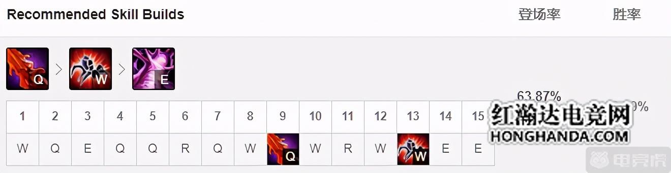 Q是蜘蛛最主要的输出技能,无论是人形态还是蜘蛛形态都有着生命百分比的伤害,能够让她很好的进行秒杀。W技能可以帮助蜘蛛快速刷野,我们选择副加。
