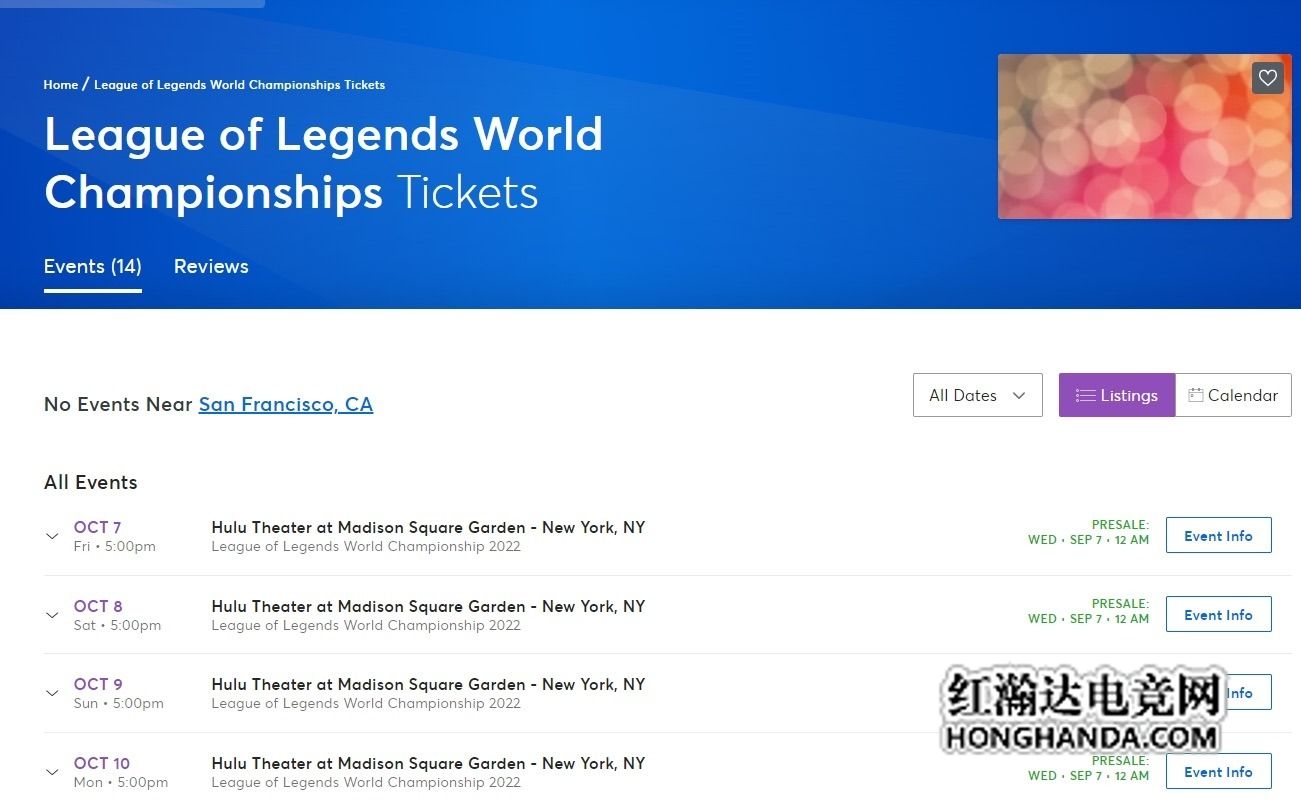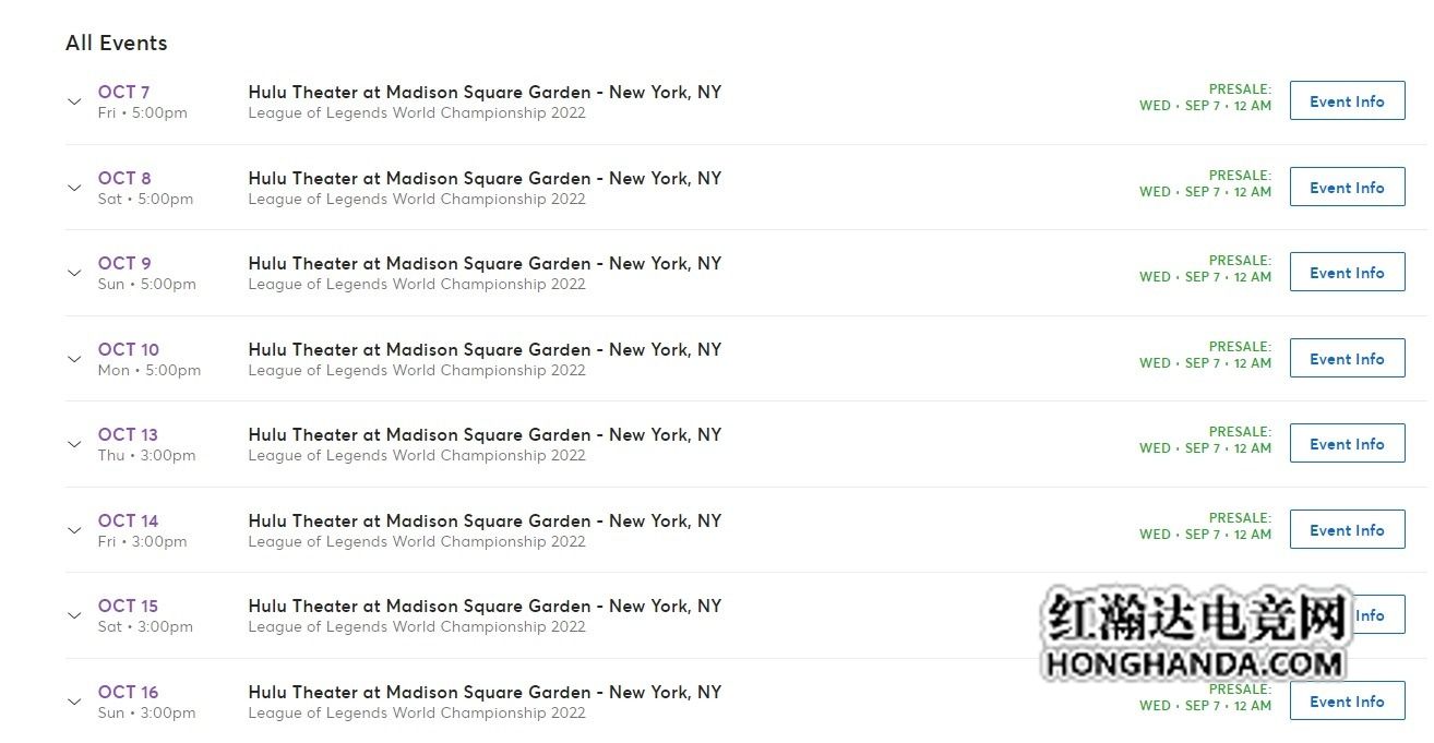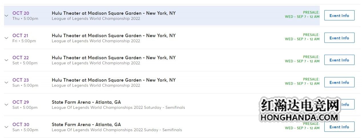 在近日Ticketmaster上已经能搜到疑似S12小组赛和八强以及半决赛的时间,小组赛第一轮是北京时间凌晨五点开始,第二轮凌晨三点开始。淘汰赛从北京时间凌晨五点开始。