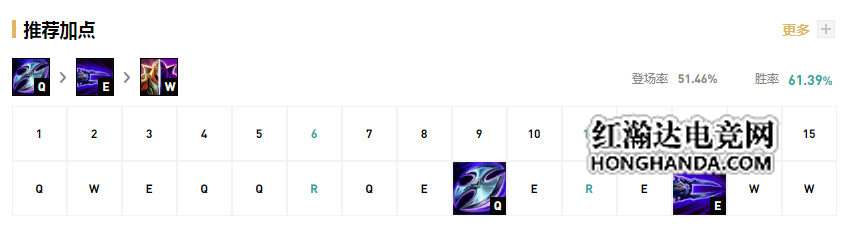 在技能加点上,劫是主Q副E,因为W技能没有伤害,只能作为位移,所以不要选择副W,这样劫的伤害在前期会少很多很多。