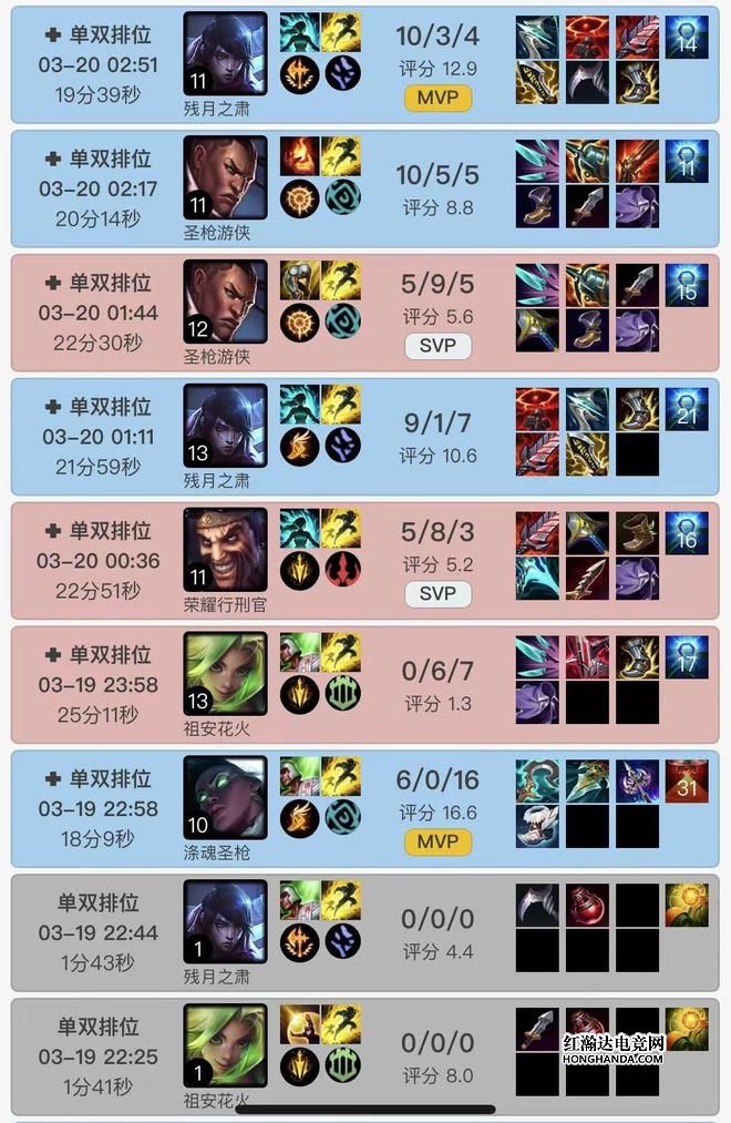接着就是回到基地后,leave马上就开始排位训练。从晚上10点多直接打到了凌晨3点,其中赢的局战绩都非常豪华,而输的3局涨有2局都是SVP,也是尽力局,唯一有一把泽丽战绩0-6,应该是下路炸裂了。