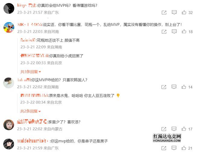 瞳夕个人微博下方的最新评论如下,有人骂她根本看不懂游戏,只是一个花瓶,乱给MVP!还有人表示瞳夕是不是只喜欢韩国人,因为瞳夕之前说过很喜欢viper;更有人怀疑瞳夕是黑子还是串子,估计投给theshy的吗?
