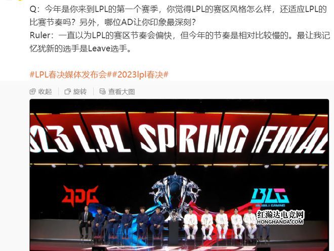 其实这已经不是ruler第一次公开夸奖leave了,包括在LPL春季赛决赛开始前一天的赛前发布会上,ruler被问到这个赛季哪个选手给你的印象最深刻,Ruler的回答也是Leave。