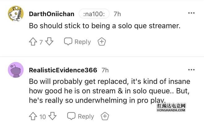 另外还有海外网友吐槽Bo:他就应该当一个排位的主播。更有人表示:Bo可能被换掉,他在直播和排位中的表现非常疯狂,但是他在比赛中的发挥真的很平庸。