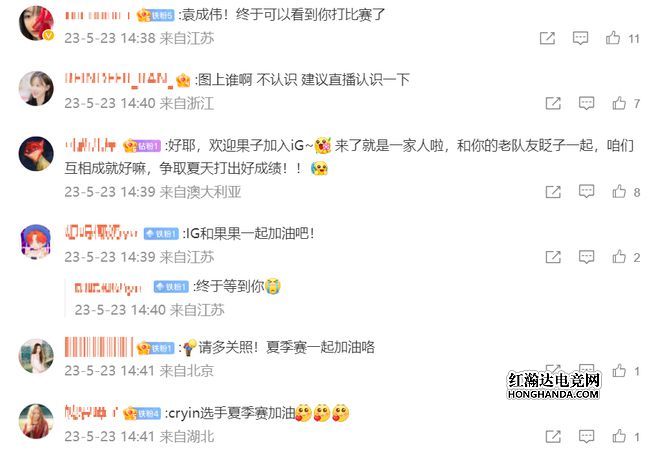 在评论区不少粉丝也非常高兴Cryin的加入,希望他和IG可以在夏季赛一起加油。也有Cryin的粉丝感慨,终于可以再次在赛场上看到Cryin了,还有粉丝表示Cryin和老队友wink再次同队,希望夏季赛一起打出好成绩。