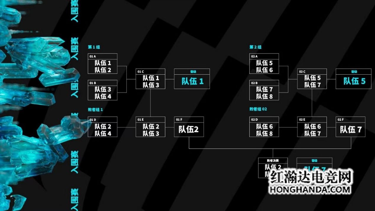 八支参赛队伍会被分成两个小组,每组由四支队伍组成。组内进行BO3双败淘汰赛。