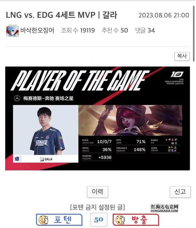 韩网热议LNG击败EDG:幸亏Gala不是亚运AD!