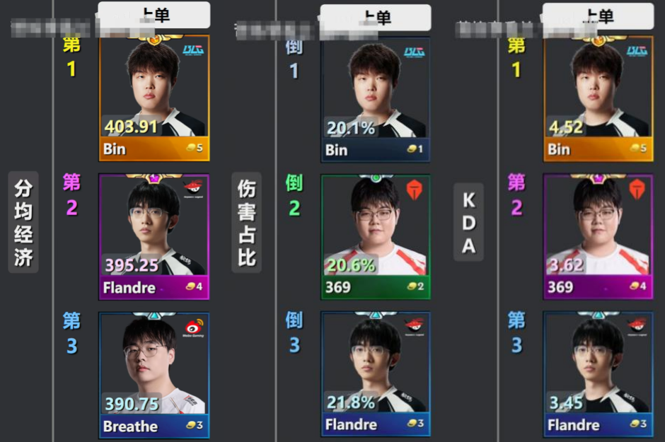 - 第三赛段上单数据出炉!TS吃草挤奶,Bin最多经济打最少输出