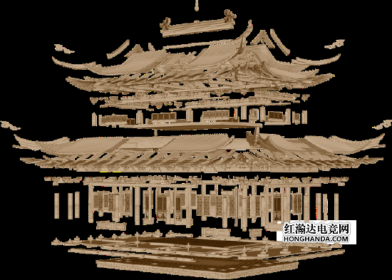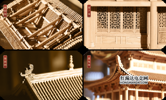 整个建筑长约1.2米、高约0.6米,由28000余个木质零件纯手工拼接穿插组成,高度还原了游戏中的原画造型,龙城的磅礴与震撼在一丝一扣中展现的淋漓尽致。
