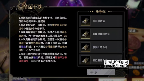 同时新增命运干涉机制!代行者们可自选1个金色命运进行干涉,被选中的命运占卜概率将大幅提升!