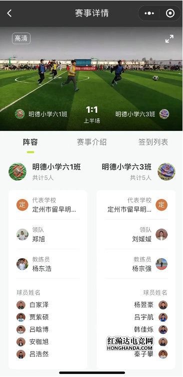而在一个月前,位于河北省定州市留早镇的留早明德学校也在线上直播了战况激烈的三场足球比赛。四五六年级的“大孩子”们各自组队,在“未来运动场”中竞技,吸引了全校师生的目光。