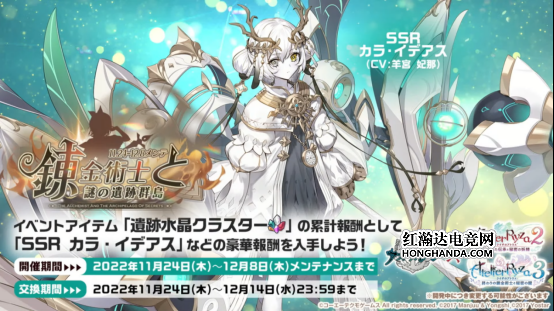 此外,直播中还爆料,累计足够多的「遗迹水晶簇」就能直接获得《莱莎的炼金工房3》中的全新角色「卡菈·伊迪亚斯」,只要积极参与活动,人人可得!