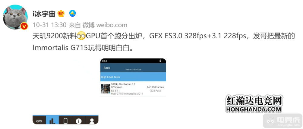 在GPU性能跑分部分,在GFXBench 1080P曼哈顿ES3.0和ES3.1离屏测试中,分别拿下了328Fps和228Fps的高分,性能最高提升最高达40%,刷新了安卓旗舰芯片的GPU性能天花板。这样的GPU性能可以在手机游戏提供更加强大的图形处理能力,进一步优化画质和流畅度体验。