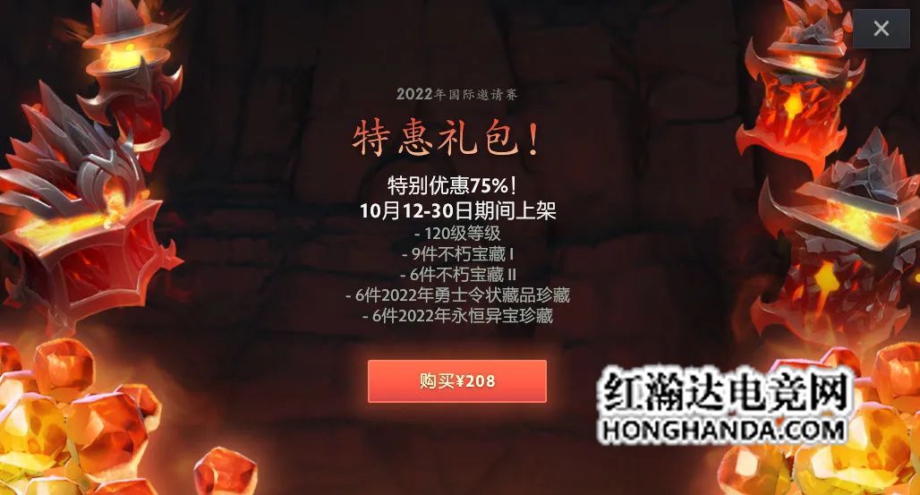 今年的首个特惠礼包——2022年国际邀请赛勇士等级礼包——已经上架,将一直售卖至10月30日,售价为208元。这款礼包塞入了120级勇士等级,9件不朽宝藏 I,6件不朽宝藏 II(11月3日的第二部分解锁),6件永恒异宝珍藏和6件勇士令状藏品珍藏,在国际邀请赛期间能使奖励之路向前迈进一大步。根据等级和珍藏的价值,礼包的优惠力度高达75%,并且销售额的25%将直接进入2022年国际邀请赛的总奖金。每位玩家可以购买一件礼包。