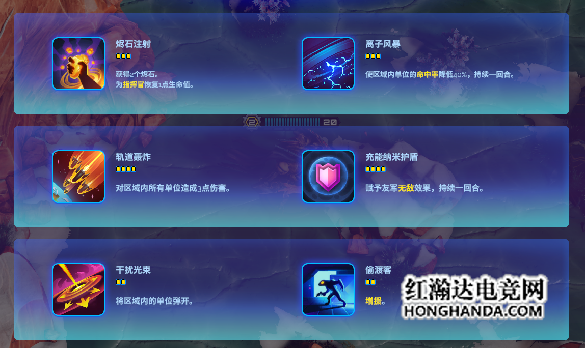 在当前版本,比较大热的两个指挥官是埃克斯特利尔和阿特拉斯,阿特拉斯有稳扎稳打的运营流,也有讲究前期速攻的铺场滚雪球流,埃克斯特利尔同样也有将指挥官作为主C杀入敌阵的辅助流和以圣盾防御装置作为核心的乌龟流。