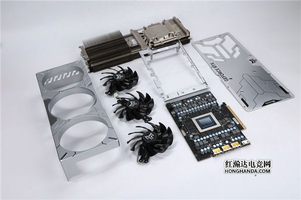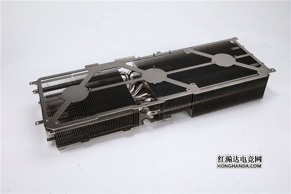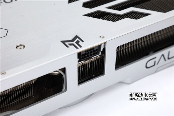 显卡背板:全金属加固背板进行了大面积镂空,以求减少尾部重量并兼顾最佳散热风道,使其足以应付运行过程中庞大热量;显卡背板中间采用拉丝工艺,展现不同的金属质感。