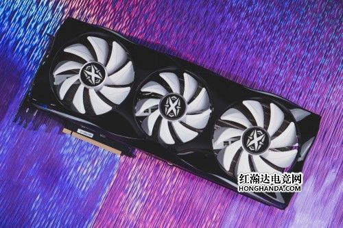 第二代「炫之黑曜石」散热器不仅升级了外观和灯效设计,还升级优化耕升专用的「炫风之刃」扇叶。由2个102mm和1个92mm组合而成的三风扇,经过升级后能提升风流量的同时减低声噪,更高速有效地散热,轻松应对高达600W TGP 功耗下的温度。