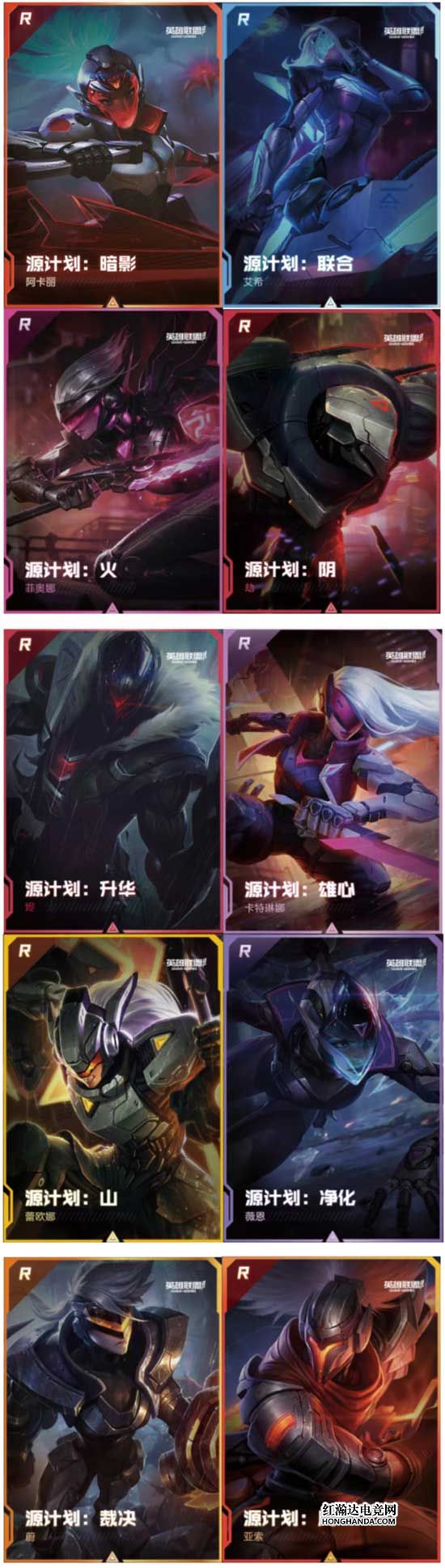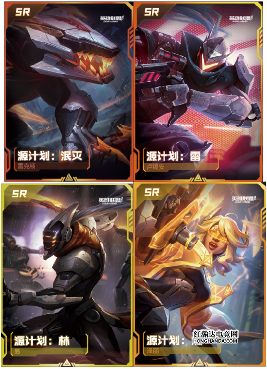 ● R级原画特典卡:使用素面镭射工艺,将往期源计划皮肤超还原、超生动地展现在召唤师面前。