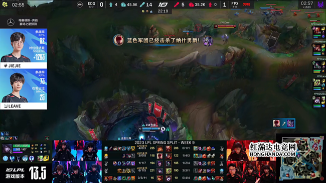 2023 LPL春季赛常规赛第九周第七日,FPX战队挑战目前联赛排名榜首的EDG战队,虽然本赛季FPX的状态十分起伏不定,而EDG正值七连胜,比赛的结果出乎了所有人的预料,FPX凭借中路和辅助出色的发挥鏖战三局,以2-1的比分爆冷终结了EDG的连胜。