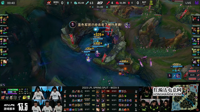 2023 LPL春季赛常规赛第九周第六日,WBG战队做客深圳挑战主队NIP战队,双方的实力差距非常悬殊,WBG连续两局都在对线期就取得巨大优势,快刀斩乱麻迅速2-0击败了NIP。