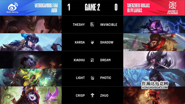 20分钟刚到,WBG进攻中路二塔,NIP以攻为守想要上前开团,但猴子刚刚进场就被秒杀,随后NIP阵型土崩瓦解四散奔逃,WBG三面包夹完美配合0换5轻松团灭了NIP,墨菲特直接空大进塔庆祝,随后WBG众人也不再拖延节奏,直接中路推进强拆一波拆掉基地,光速结束了第二局比赛,恭喜WBG 2-0轻松取胜!