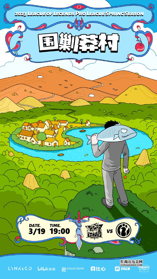 LNG的海报标题是“围剿莽村”,玩起了电视剧《狂飙》里面“老默,我想吃鱼了”的梗,“鱼贩大佬”LNG准备围剿远处布局呈太极图样式的“莽村”iG。LNG积分10-3排名第3,净胜分比前两名EDG、JDG少3分,不过这两支队伍只剩2场比赛,LNG还剩3场要打,仍然有机会竞争季后赛的双败“复活甲”。