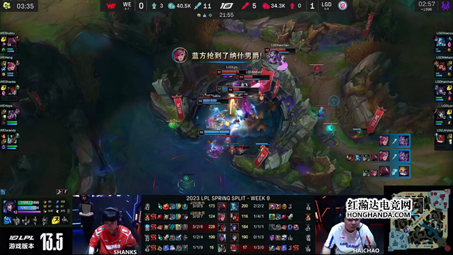 2023 LPL春季赛常规赛第九周第四日,WE战队坐阵西安迎战LGD战队,首局比赛LGD发挥出色,通过灵活的决策拿下龙魂赢得关键团战先拔头筹。而WE迅速调整了战术,在前期重点进攻野区为下路建立优势,随后滚起雪球让一追二拿下今天的BO3。