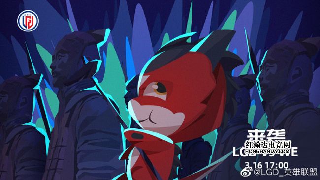 LGD的海报标题为“来袭”,LGD的吉祥物小红龙顺利地潜入兵俑方阵中,准备从内部瓦解敌人。LGD在上一场比赛中2-0爆冷横扫TES,向LPL宣告着“最强水鬼”强势归来。目前LGD积分5-8排名第13,如果最后三场比赛全胜,拿到8分就可以和其他队伍竞争季后赛的席位。