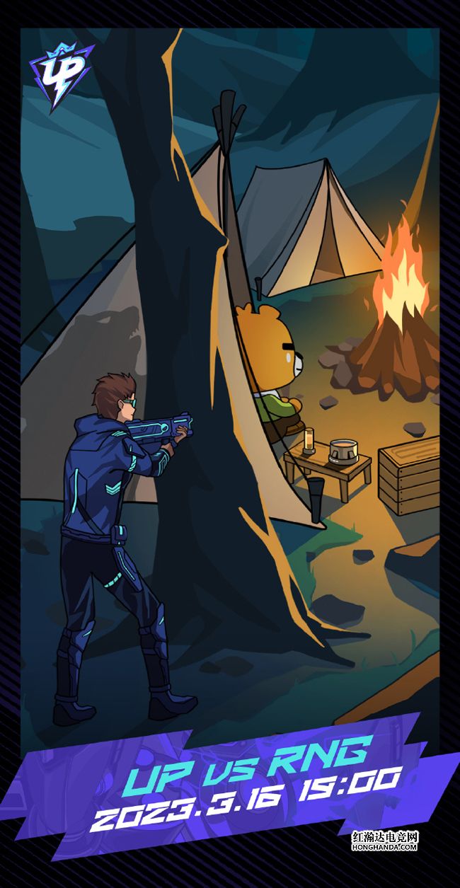 UP的海报标题为“伺熊伏猎”。近期苦吞五连败的UP和“难兄难弟”AL都已经确定无缘季后赛,昨天AL从LNG手中拿到了一分,打出了自己的风采,不知道今天UP能否送给RNG一场难忘的对局?