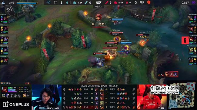 北京时间3月15日,LPL春季赛第九周第三天的第一场比赛由TT对阵TES!两队近期都遭遇了两连败,第一局TT选出运营分带阵容,中期TES有力无处使节奏受制,TT两度利用大龙逼团,HOYA的格温一剪五发挥亮眼,最终TT有惊无险2-1送给TES三连败!