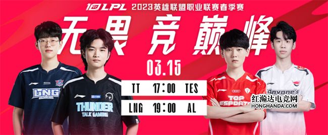北京时间3月15日,LPL春季赛第九周迎来第三日赛程:近期遭遇两连败的TT、TES狭路相逢,哪支队伍能够率先终止连败;晚上第二场由排名垫底的AL做客苏州挑战LNG,熊猫侠客AL能否实现触底反弹?