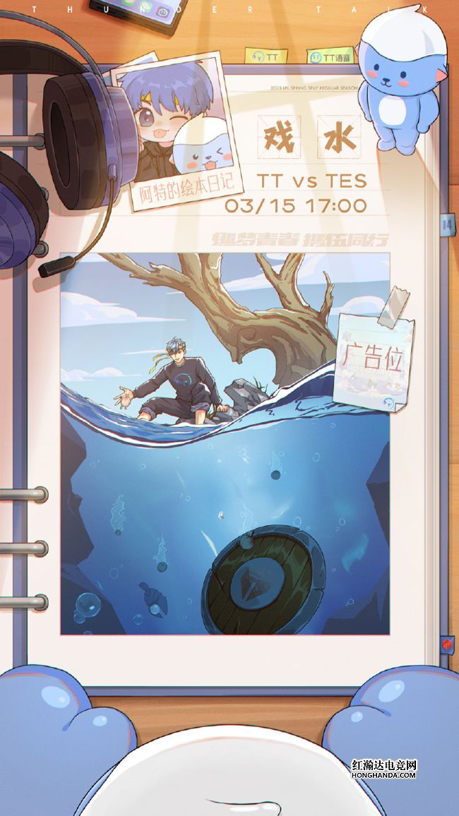 TT的海报标题“戏水”一语双关:既指阿特在绘本日记中欢乐地玩水,又暗示今天将在比赛中戏耍“水子哥”JackeyLove~TT在常规赛末段的赛程安排是不折不扣的“魔鬼赛程”:在以0-2不敌JDG和BLG之后,TT又将在今天直面TES,不过滔搏哥最近也是两连败,状态较为低迷,TT仍然有机会获得小分或者拿下比赛。