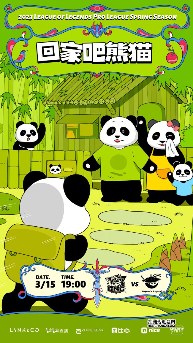 LNG的海报标题“回家吧熊猫”紧跟时事——旅美大熊猫“丫丫”预计将于近期回国。LNG在上一场1-2不敌JDG,好在已经锁定了季后赛的席位,可以安心地进一步提升自身实力,今晚对上排名垫底的AL有望解锁第10胜,而AL在确定无缘季后赛的情况下能否实现触底反弹呢?让我们拭目以待吧!