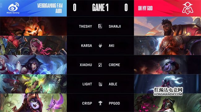 中期OMG发现了在大龙坑上方排视野的蔚,不料WBG的支援及时赶到,反杀了OMG双C,OMG中路一塔随之告破。23分钟两队在小龙河道大打出手,阿狸吸收了OMG的第一波伤害无憾倒地,TheShy的纳尔“如来神掌”拍回四人,Light的泽丽无人限制斩获五杀,WBG打出1换5团灭OMG大获全胜,“听牌”了炼金龙魂。Aki的酒桶面对绝境顶住了压力,从WBG手中抢到了大龙。WBG则推掉剩余外塔,经济仍然领先7千。OMG选择在中路背水一战,Light的泽丽再砍四杀,带领WBG打出0换5团灭OMG一波结束比赛,1-0先下一城!