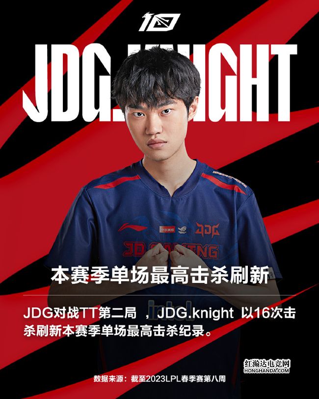 JDG对战TT第二局,JDG中单knight以16次击杀刷新本赛季单场最高击杀纪录!