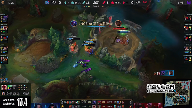 2023 LPL春季赛常规赛第八周第七日焦点战,LNG战队对阵JDG战队,两支实力位于LPL上游的顶尖强队贡献了三局非常精彩的攻防大战,LNG在第一局通过出色的中野节奏扩大优势先下一城,而JDG战队在第二局前期劣势的情况下展现出顽强韧性,用扎实的团战发挥扭转局势扳平比分,最终决胜局里JDG通过对于资源的掌控夺取主动,最终让一追二2-1战胜了LNG。
