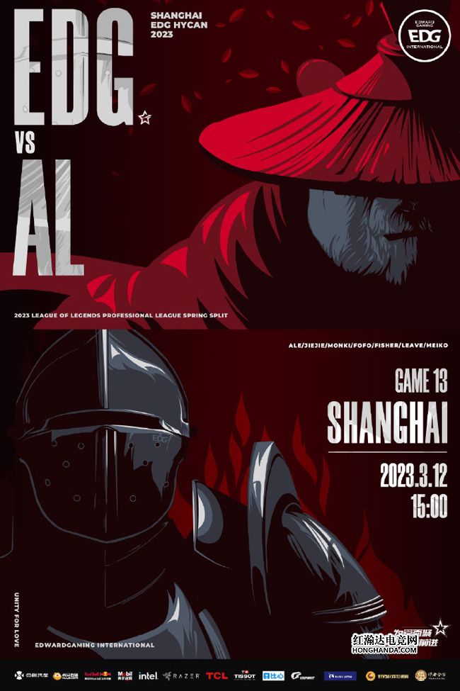 EDG的海报标题为“江湖纷乱,谁主浮沉!”暂居榜首的EDG近期豪取五连胜状态火热,也是目前LPL连胜场次最多的队伍之一,而今天的对手AL积分2-10排名倒数第二,基本上已经无缘季后赛了,希望两队能为我们带来精彩的对局。