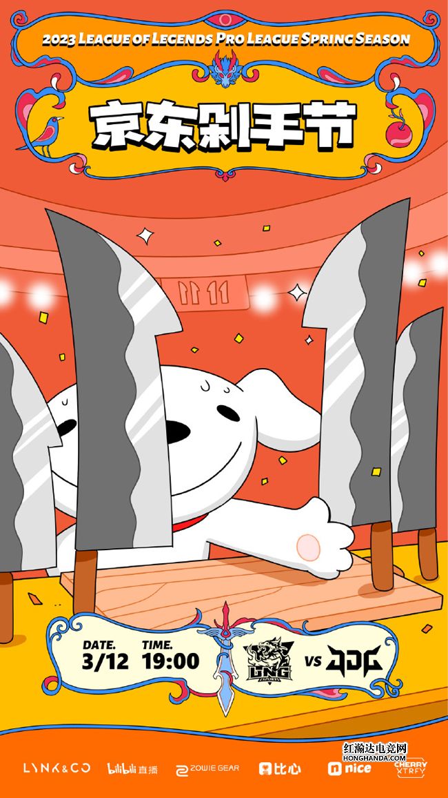 LNG的海报标题是“京东剁手节”,LNG积分9-2排名第2,虽然之前输给了EDG,但今天还有机会争夺榜首宝座,就看对手JDG答不答应了。