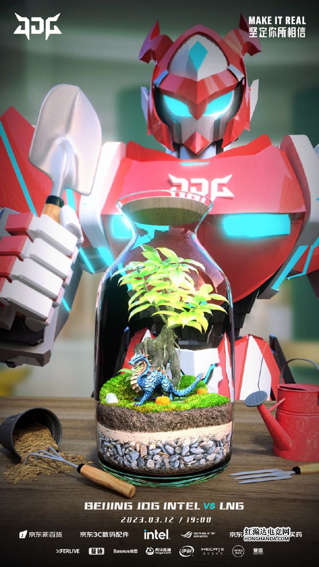 JDG的海报标题“植树罩麟”紧跟时事——今天是植树节,所以JDG玩起了“植树造林”的谐音梗,“麒麟云中现”也变成了“瓶中现”~虽然JDG排名第3,但净胜分和EDG、LNG一样,今晚过后究竟哪支队伍能够领跑积分榜?让我们拭目以待!