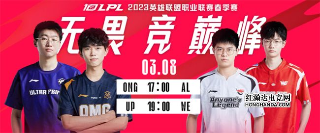 北京时间3月8日,LPL春季赛第八周迎来第三日赛程:5点的第一场由AL挑战三连胜的OMG,Zdz、shanji上路争锋;晚上第二场由WE坐镇西安主场迎战UP,哪支队伍能率先终止连败?
