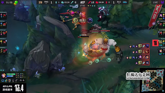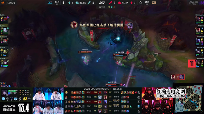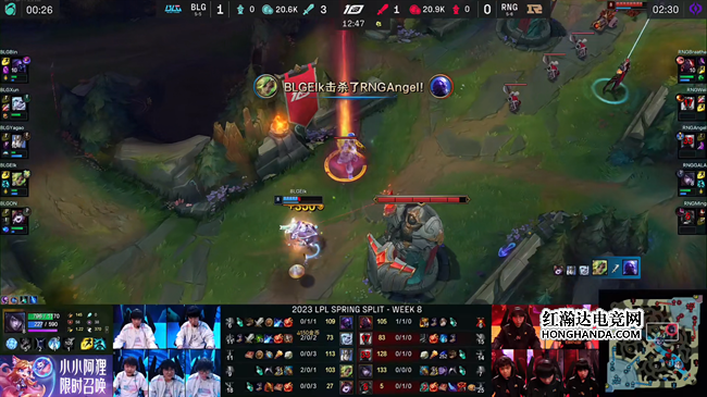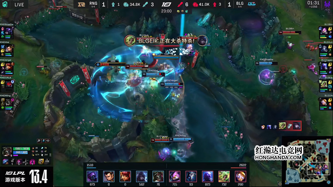 2023 LPL春季赛常规赛第八周首日,RNG战队对阵BLG战队,两队贡献了非常精彩的团战发挥,决胜局里BLG更是出其不意掏出机器人辅助,通过中期连续不断的神钩开团打崩了RNG的节奏,最终BLG完美团战2-1击败RNG带走比赛胜利。