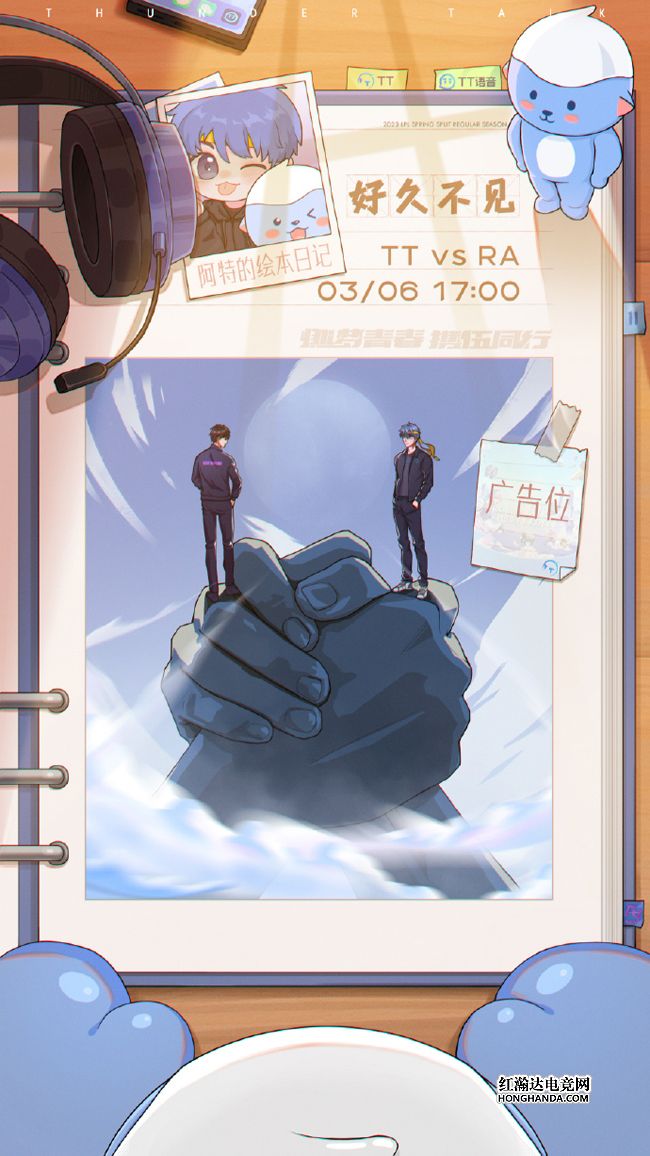 TT的海报标题为“好久不见”,TT积分6-4排名第8,在第7名的OMG小分更高以及第9名的BLG今天也有比赛的情况下,这一场胜利对于TT而言至关重要,如果能干净利落地拿下RA,手握7分的TT在后续赛程中可以进一步争取更高的季后赛顺位。