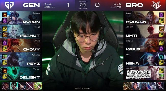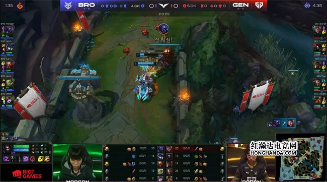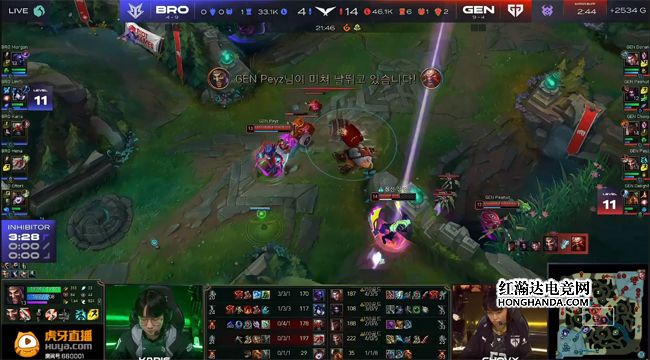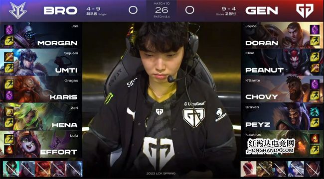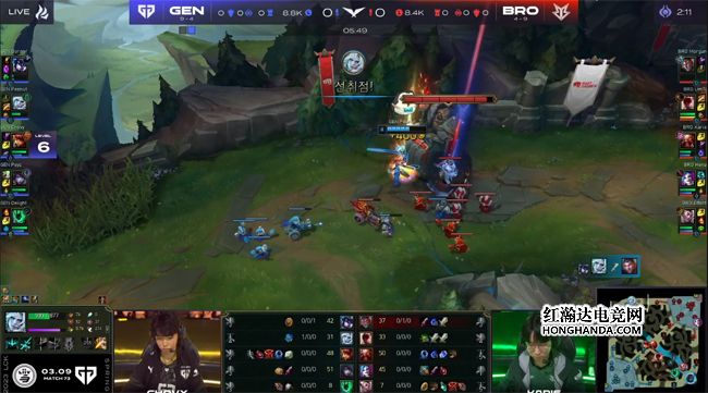 北京时间3月5日,LCK春季赛第七周的收官战由BRO对阵GEN!第一局GEN把奎桑提摇到了中路,在BP上占得上风,对线期BRO一直“军训”Doran的杰斯,不过GEN更快地从下路打开了局面,最终以碾压之势2-0双杀BRO!