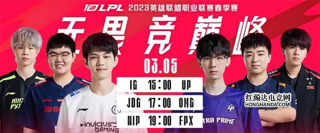 北京时间3月5日,LPL春季赛第七周迎来收官日:3点的第一场由Ning、Baolan率UP直面老东家iG;第二场由OMG挑战榜首新王JDG;晚上的收官战则是FPX、NIP掀起“地王山对决”!