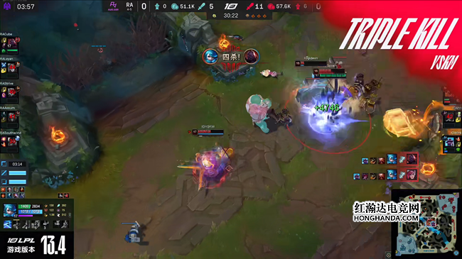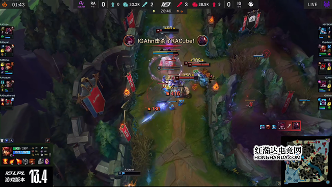 YSKM格温以一敌四绕后四杀,IG团战压制2-0轻取RA