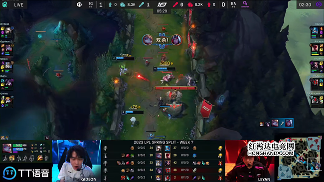 2023 LPL春季赛常规赛第七周第五日,RA战队对阵IG战队,IG凶猛的团战能力完全压制住了RA,通过两局精彩的发挥2-0战胜RA带走胜利。