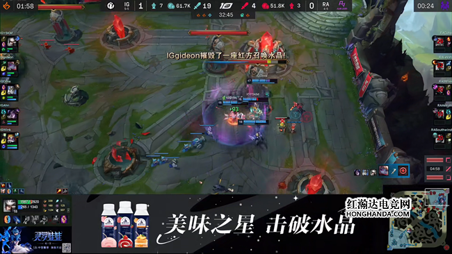 破解了RA的大龙Buff攻势,IG拥有的火龙魂在正面的作用更加明显,他们两路分推逐步推进高地,RA面对大兵压境无可奈何选择了以攻为守,但双方的伤害此时不在一个水平,IG稳健发挥强势击溃RA以后推平基地拿下了第一局比赛的胜利,恭喜IG 1-0暂时领先。