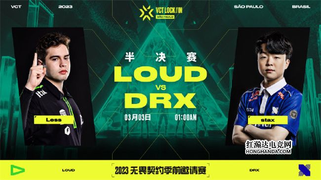 2023无畏契约季前邀请赛半决赛在巴西圣保罗如期举行,首先登场的两支队伍分别是来自太平洋联赛的韩国强队DRX与来自美洲联赛的卫冕世界冠军LOUD。比赛采取单败制BO5淘汰赛。身为2022无畏契约全球冠军赛卫冕冠军的LOUD主场作战声势惊人,一路杀入半决赛的他们势不可挡,同时坐阵主场拥有巴西观众的热情支持,誓要在老家捍卫世界霸主称号。而DRX战队身为太平洋联赛的独苗、亚洲的最后希望,若能够战胜LOUD无疑将得到极大的气势提升,有望争夺他们的首座世界冠军奖杯。