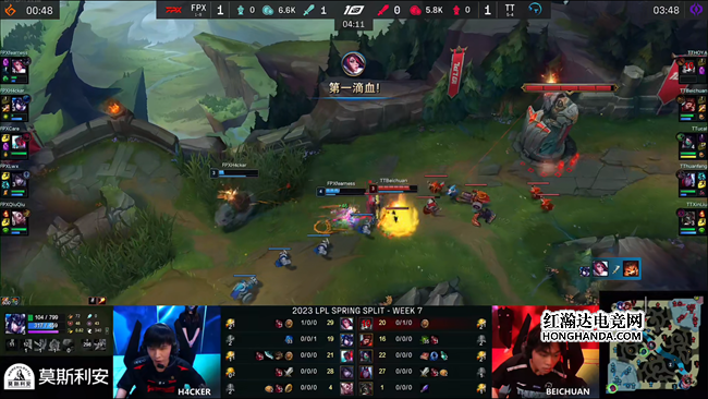 2023 LPL春季赛常规赛第七周第四日,TT战队迎战FPX战队,过往成绩不佳的TT战队在本赛季的发挥非常亮眼,而曾经制霸LPL的FPX已成昨日黄花,两队带来精彩的攻防大战打满三局,最终TT 2-1战胜FPX。