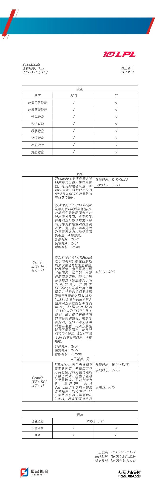腾竞体育也于近日公布了这场比赛的裁判报告: