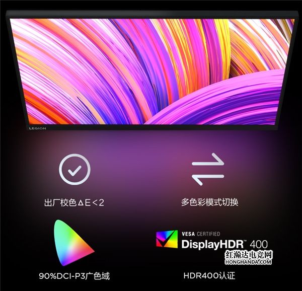 虽然Y27q(240Hz)是专为电竞而生,但是在显色方面毫不含糊,甚至可以说领先许多电竞显示器。Y27q(240Hz)采用了市面上应用广泛的IPS技术面板,带来更广阔的视野和更为真实的色彩,它拥有的99% sRGB专业色域和90% DCI-P3广色域支持,10.7亿色以及10bit色深,以及Delta E<2 色彩精度,并通过DisplayHDR400认证,无论是游戏电竞,还是影音娱乐,或是各种设计、剪辑等工作,都能够适用,真正做到“工作娱乐”两不误。